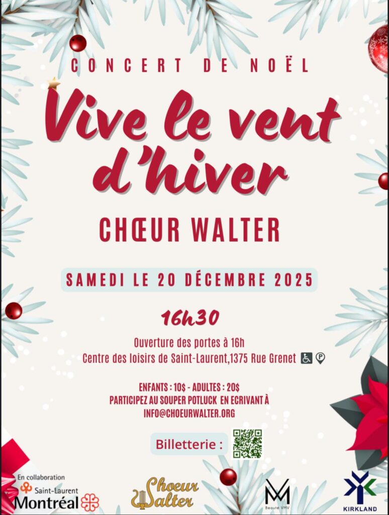 Chœur Walter est une chorale OBNL, pour petits et grands, qui propose un programme musical de qualité aux personnes qui ont des moyens financiers restreints. OBNL depuis 2011, cette entreprise culturelle est en partenariat avec l’arrondissement de Saint-Laurent, depuis plus de 13 ans, et la ville de Kirkland depuis 5 ans. L’organisme communautaire La Maison d’Haïti est aussi son allié, depuis 7 ans, tout comme l’organisme communautaire La Perle Retrouvée depuis 2 ans. La Société de Recherche et de Diffusion de la Musique Haïtienne (SRDMH) est un nouveau partenaire de Choeur Walter. Dans un futur proche, le Choeur Walter souhaite également propulser École Walter afin d’offrir un programme musical complet.